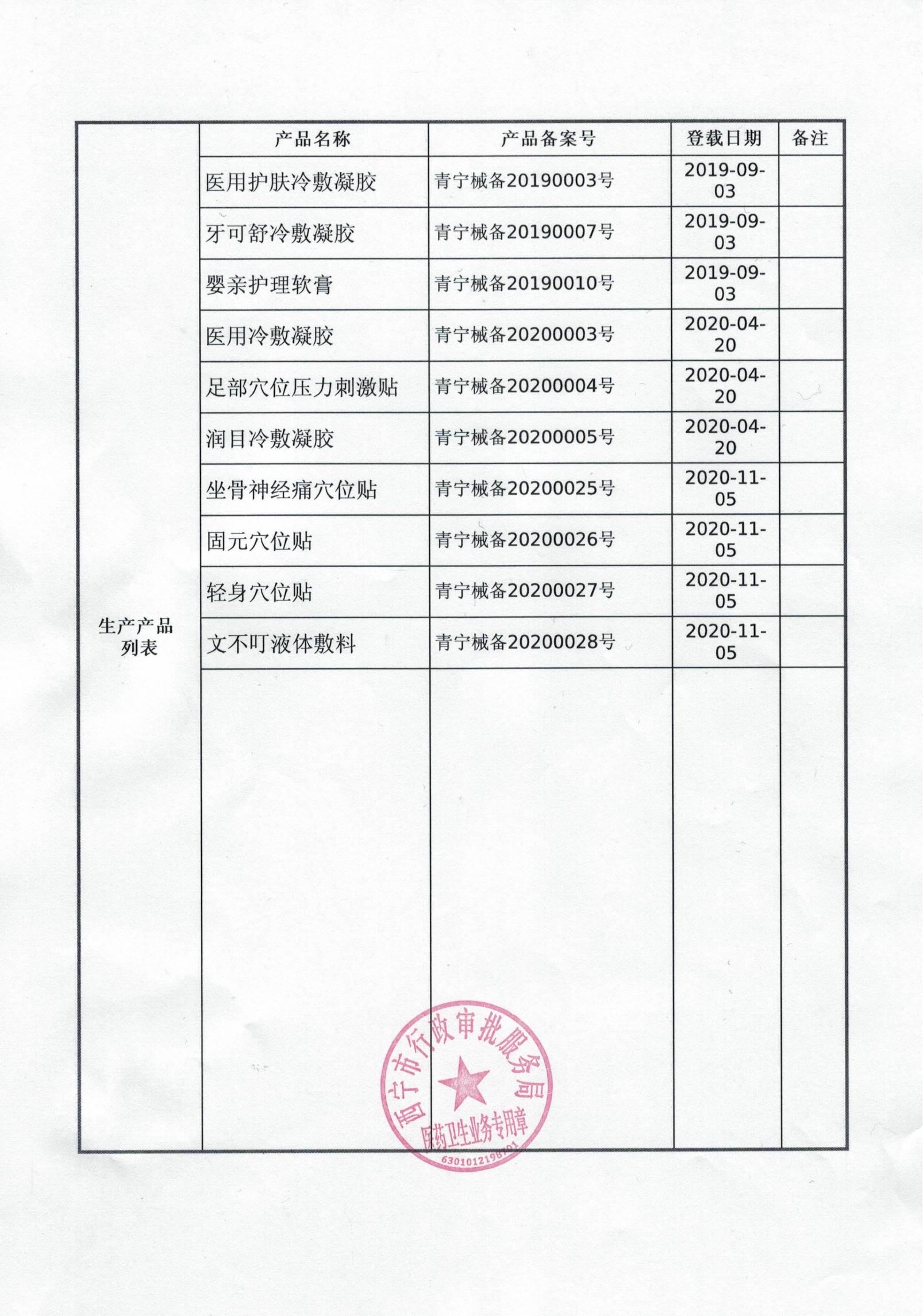 第一類醫療器械生產備案憑證