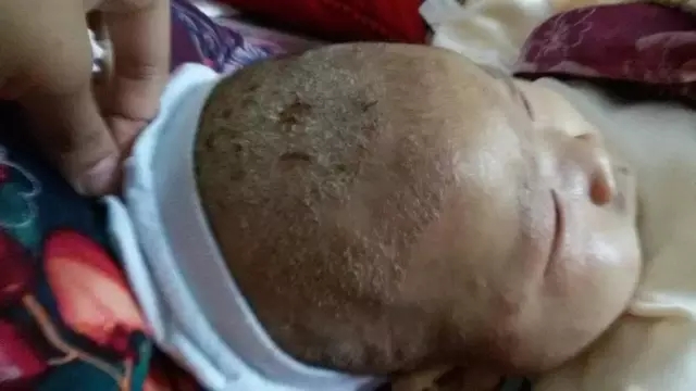 這張圖片中寶寶臉上是較典型的膿皰疹,出現熱疹后如果沒有控制好嚴重下去繼發感染就會形成膿皰疹。